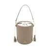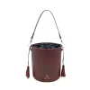 Fabricado en piel auténtica de alta calidad, destaca por su tacto suave, resistencia y acabado refinado. Su diseño tipo bucket o saco aporta un estilo moderno y minimalista, mientras que el cierre superior fruncido protege el contenido con un toque distintivo y femenino.