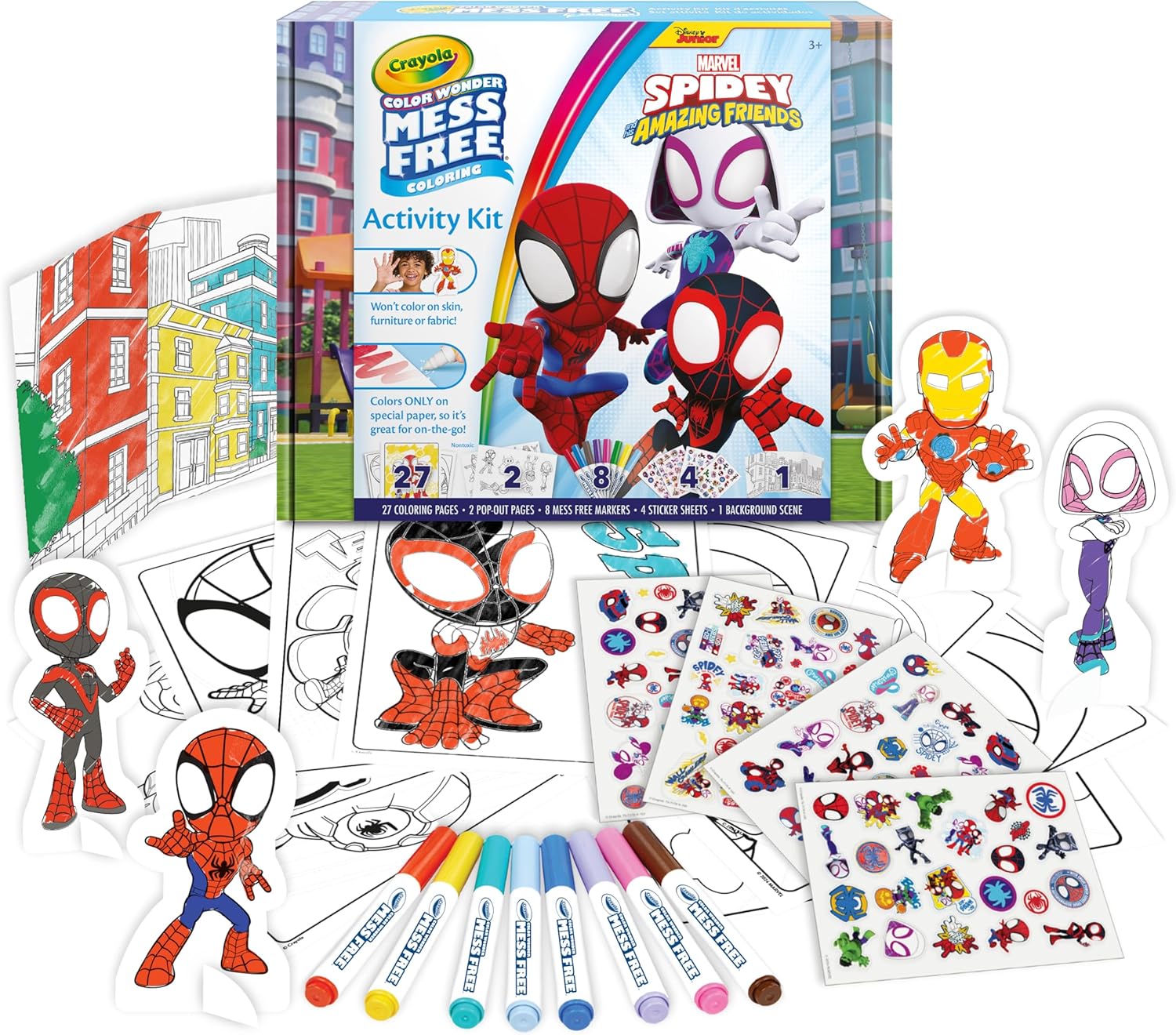 Gracias a la tinta invisible Color Wonder, el color aparece solo en el papel especial incluido, lo que significa que no mancha la ropa, la piel ni los muebles. Perfecto para pintar en casa, de viaje o en cualquier sitio sin preocupaciones.